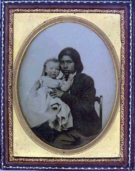 a child's picture in the 1850s, because of the long exposure time. The child trusts the youth. The